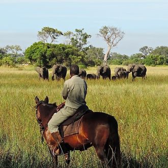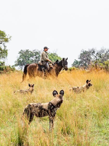 You will be met on arrival at Maun airport and transferred to camp. We recommend flying in by helicopter as it's a magical experience and means you arrive in time for an afternoon ride. Make sure to pack some riding clothes in your hand luggage in case your main luggage becomes separated during travel. Your ride will be followed by sundowners and dinner in camp.